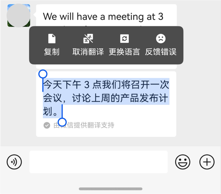 此外,我的工作中偶尔会收到英文的截图或文档,以前得先保存到手机,再打开翻译应用。现在鸿蒙版微信支持了扫一扫翻译,可以直接高效翻译成中文;聊天框里的英文消息也能长按翻译,跟外国同事或客户沟通变得更顺畅。而且,鸿蒙版微信现在还能直接向企业微信联系人发起视频通话,线上开会沟通更方便。